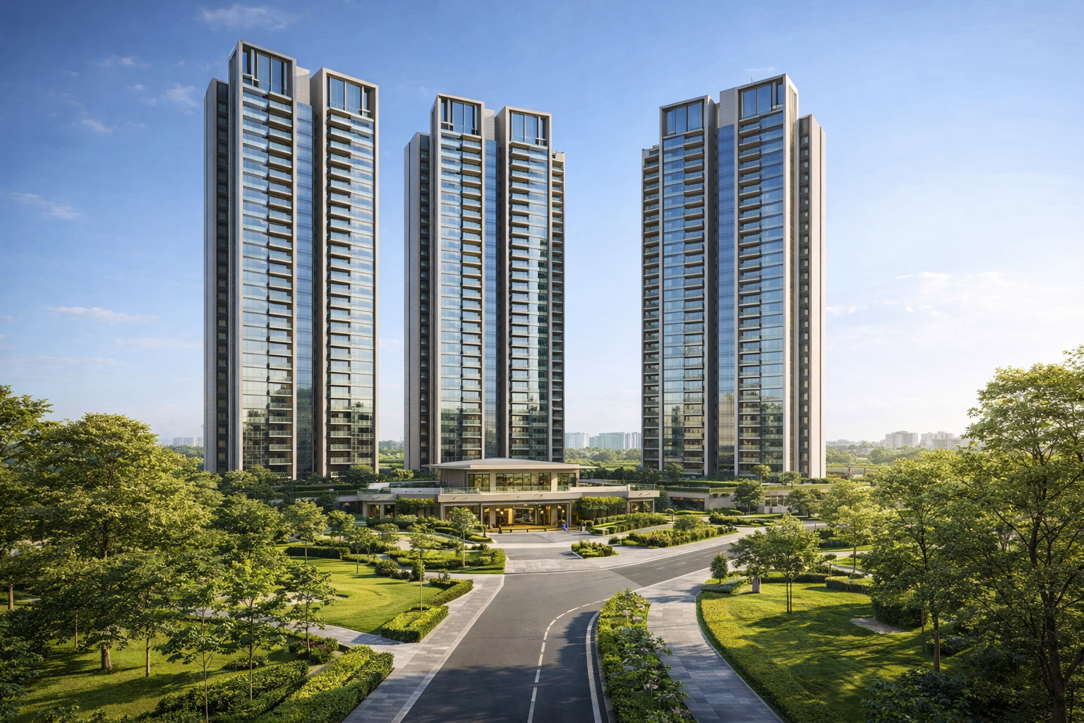 Wide open spaces, landscaped gardens, and tree-lined pathways provide residents with a calm and refreshing environment away from the city’s hustle. The architectural design blends modern aesthetics with natural elements, creating a serene yet luxurious living experience.
